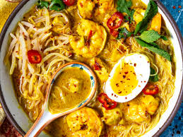 - 설명: 코코넛 밀크 베이스의 매콤한 국수, 새우·어묵·계란 토핑